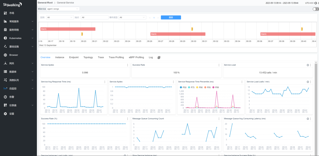 2. SkyWalking:Apache SkyWalking 是一款开源的应用性能监控与分析系统,提供了对 Java、.NET 和 Node.js 等语言的支持。它可以与 Spring Cloud Sleuth 集成,将追踪数据发送到 SkyWalking 服务器进行可视化展示和分析。