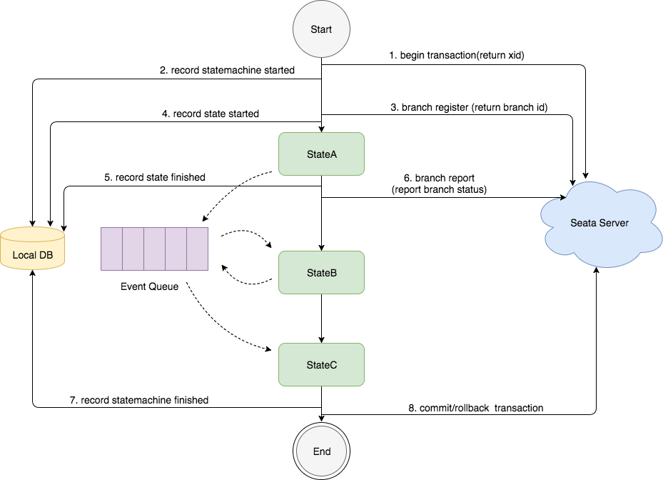 1. SAGA模式:SAGA模式是一种基于事件驱动的分布式事务模式。在SAGA模式中,每个服务都可以发布和订阅事件,通过事件的传递和处理来实现分布式事务的一致性。Seata提供了与SAGA模式兼容的Saga框架,用于管理和协调分布式事务的各个阶段。