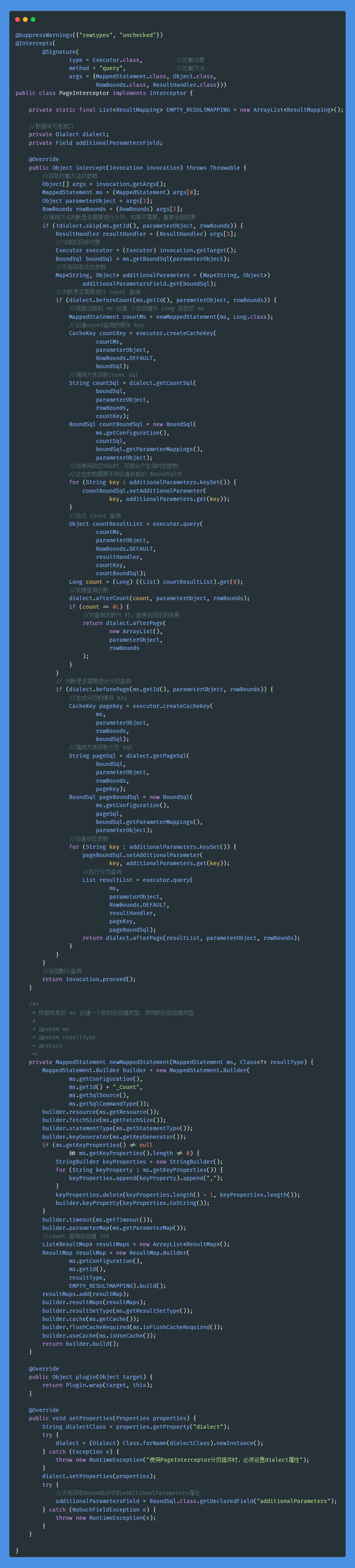 可以看一下一个大概的MyBatis通用分页拦截器: