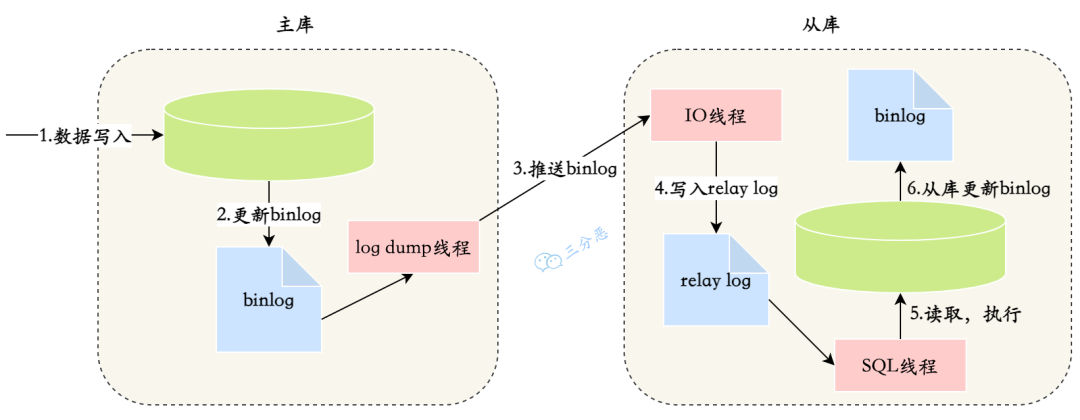 一个服务器开放N个链接给客户端来连接的,这样有会有大并发的更新操作, 但是从服务器的里面读取 binlog 的线程仅有一个,当某个 SQL 在从服务器上执行的时间稍长 或者由于某个 SQL 要进行锁表就会导致,主服务器的 SQL 大量积压,未被同步到从服务器里。这就导致了主从不一致, 也就是主从延迟。