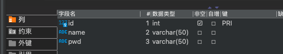 pwd varchar(50),primary key(id))