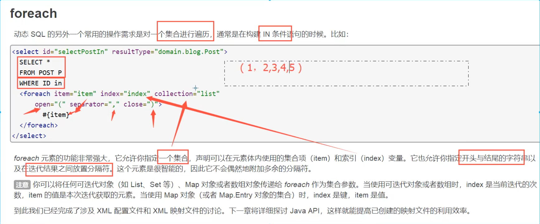 <select id="selectBlogForeach" parameterType="map" resultType="Blog">